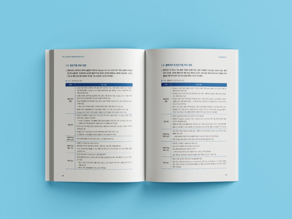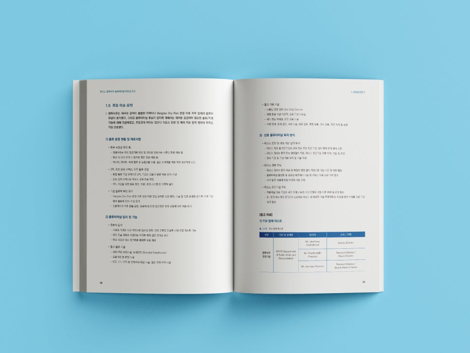 참파삭 물류 현황 및 환경의 타당성을 조사하는 '라오스 참파삭주 물류 마스터플랜 수립' 용역의 최종 보고서 편집디자인을 진행하였습니다.